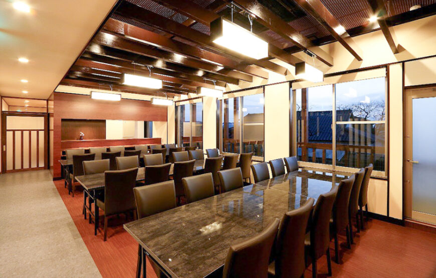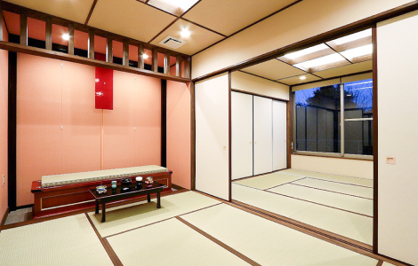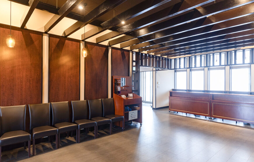 地域では初めての葬儀会館と法事会館が隣接する施設で、住宅街である三池地区の景観に合うよう日本家屋をイメージした作りになっています。
