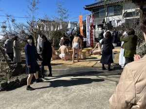 16日は晴天ながらも冷え込む中、お寺の山門・本堂・ご本尊様・お檀家さん・寺族・親族の前で、水行を行い、身を清め、ご本尊様の前で皆様のおかげで成満できたと帰山奉告をされました。