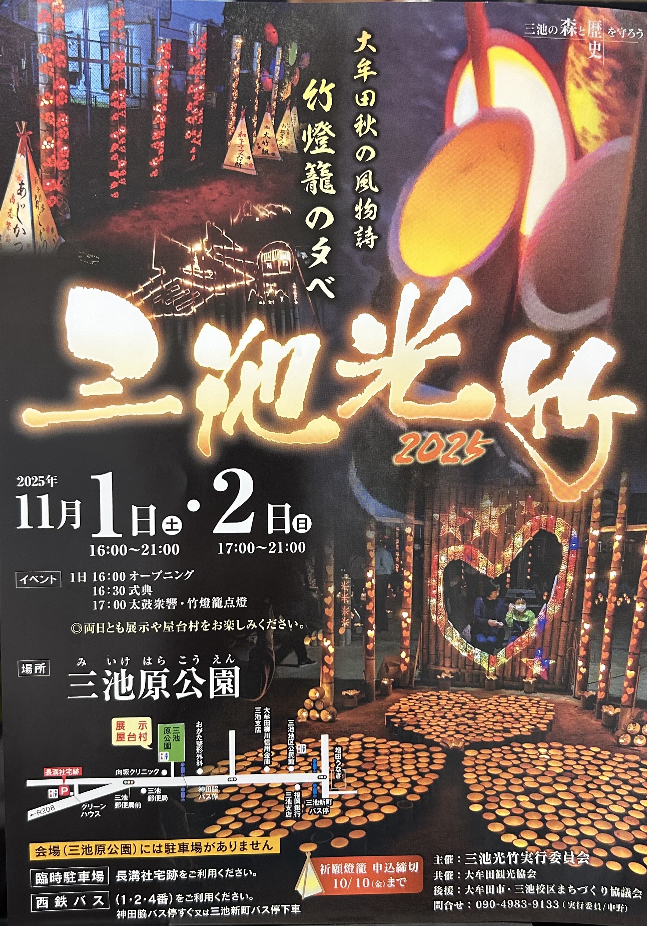 11月1日・2日と三池原公園にて開催される三池光竹、ぜひお越しください。