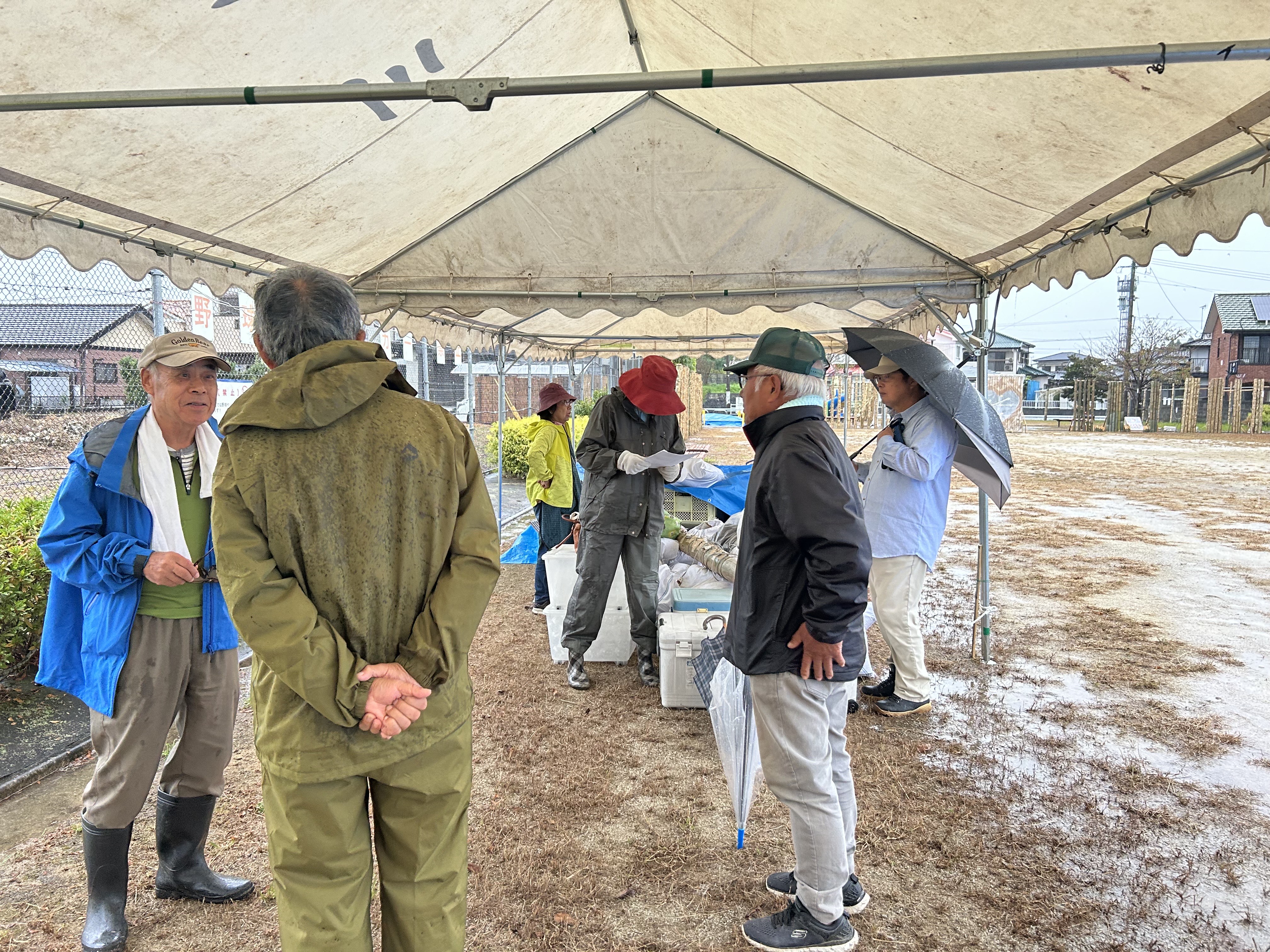 31日は天気予報どおり朝から雨、合羽を着て三池小学校、白石倉庫、記念グランドの各所からテーブルやイスを借りて公園に運び入れました。午後2時過ぎには雨もやみ準備が出来て良かったです。1日・2日は来場者も多く賑逢いました!