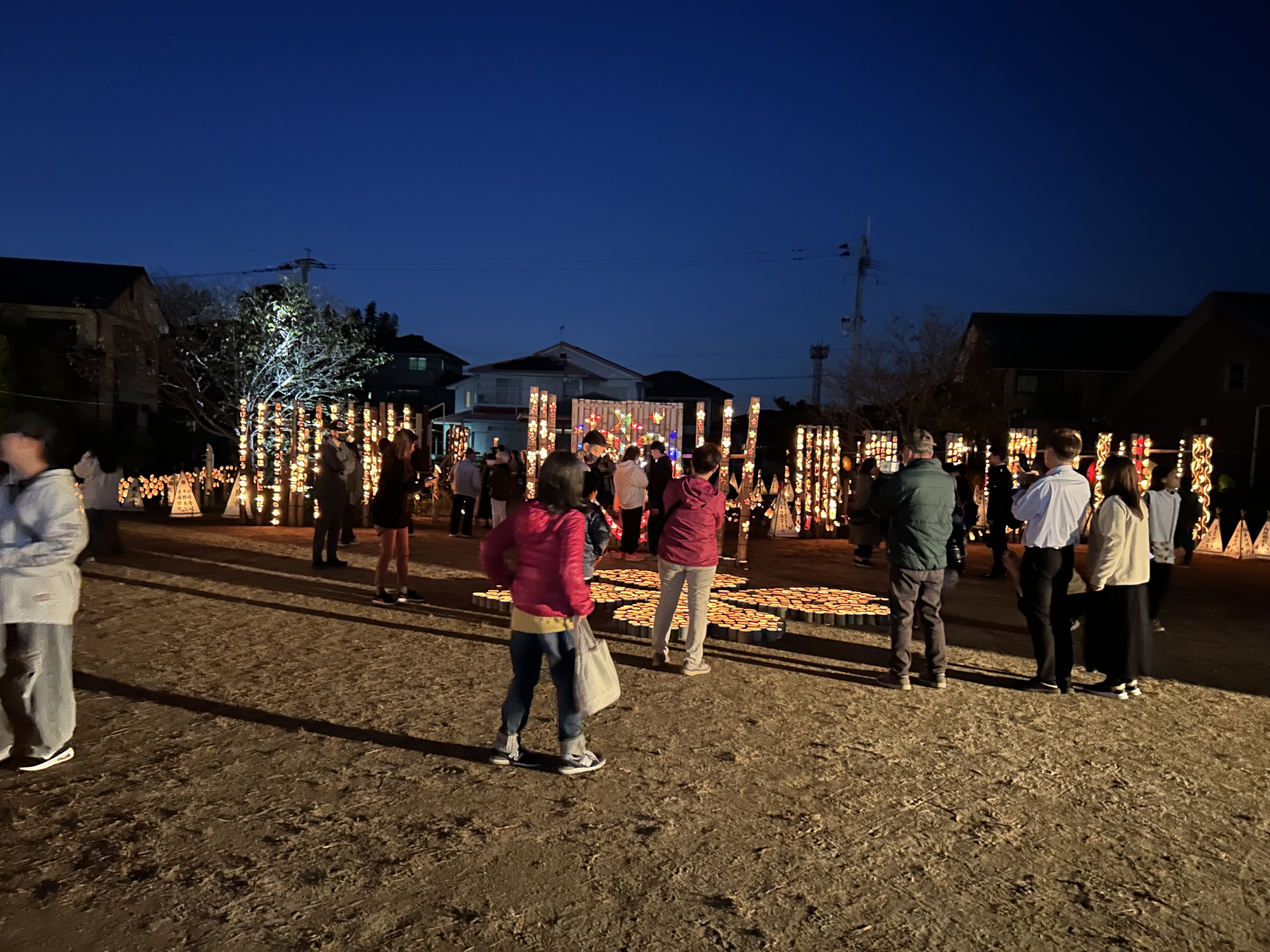 この日はオブジェの設置など夕方までの作業でした!昨年は雨で広場がぬかるんだため山砂を入れて対処しました。今年も31日が雨予報だったので、昨年の教訓を生かし広場をブルーシートで覆って帰りました。