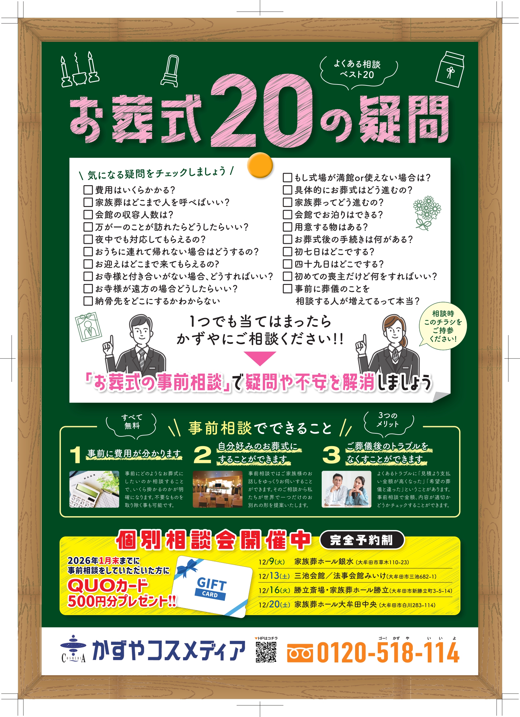 12/20(土) 家族葬ホール大牟田中央(大牟田市白川283-114)